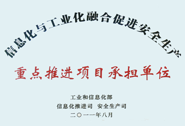 我廠被工信部授予“兩化融合促進(jìn)安全生產(chǎn)重點(diǎn)推進(jìn)項(xiàng)目承擔(dān)單位”稱號(hào)