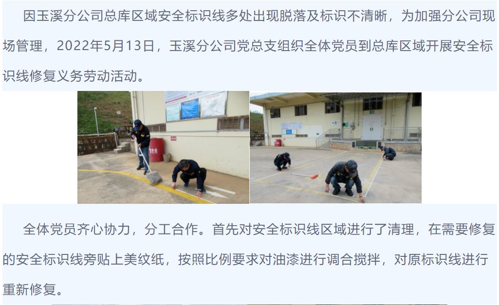 玉溪分公司組織黨員開展修復(fù)安全標(biāo)識(shí)線義務(wù)活動(dòng)