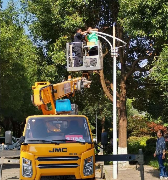 工作人員頂著烈日,在開登高車師傅的配合下,技術嫻熟,按照之前的更換路線及方案,一鼓作氣完成了25盞路燈的更換。晚上,路燈徐徐亮起,為住戶們的晚間出行增添了一份安全保障。此刻,我們工作人員白天被汗水辣疼的眼睛也頓時明亮了起來。