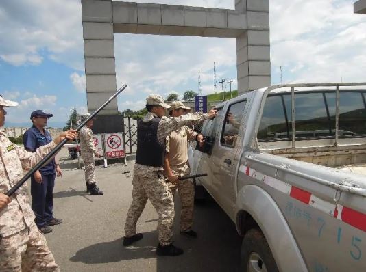 演練場景模擬二:大門沖撞。2名不法分子駕車至公司大門口,企圖強制進入生產(chǎn)區(qū)實施恐怖活動;公司應急專業(yè)組對此突發(fā)事件進行先期處置,東川區(qū)反恐怖領導小組趕到現(xiàn)場,抓捕犯罪嫌疑人的場景。