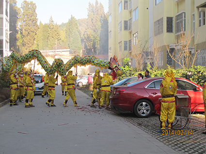 下午四點(diǎn)半,“元宵節(jié)”舞龍拜年活動(dòng)開始,由乳化車間、各部門職工組成的2只舞龍隊(duì)伍歡騰活躍,帶來了一派欣欣向榮的熱鬧景象,舞龍隊(duì)敲鑼打鼓的按順序到新邑村、各車間、辦公樓及生活區(qū)為職工家屬登門拜年,炮竹與鑼鼓齊響,熱鬧非凡,可謂是聲聲炮竹響,歡樂迎新年。