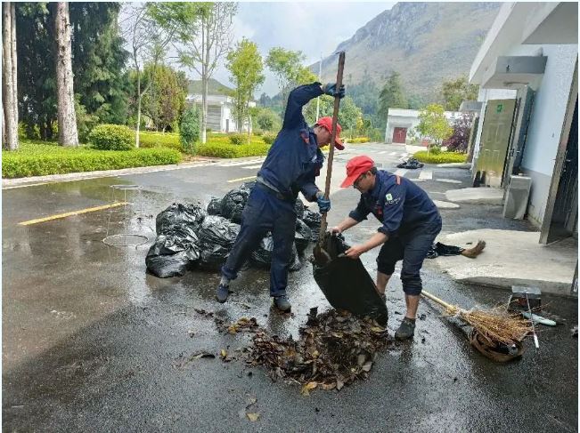 公司組織清掃隊(duì)伍對(duì)屋頂?shù)穆淙~進(jìn)行全面清掃,消除了因落葉堵塞排水口而引發(fā)的屋頂積水安全隱患,并對(duì)發(fā)現(xiàn)的管道堵塞點(diǎn)進(jìn)行清理疏通,確保屋頂?shù)呐潘到y(tǒng)暢通。同時(shí)清理了溝道內(nèi)的垃圾和淤泥,確保溝道無(wú)阻。