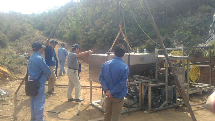 2017年4月12日,工廠研發(fā)與創(chuàng)新中心組織人員到武定分廠開展JWL-DXRH型地下模塊式裝藥器的帶料試驗(yàn)。工廠工藝技術(shù)研發(fā)室、裝備技術(shù)研發(fā)室、安全技術(shù)檢測(cè)室、設(shè)備動(dòng)力管理部、信息管理中心、武定分廠、云南安化五八一有限公司、深圳市金奧博科技股份有限公司共抽調(diào)30余人配合進(jìn)行此次試驗(yàn)。